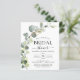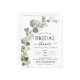 Fêtez la mariée à être en style avec notre magnifique invitation à la douche nuptiale d'eucalyptus. Ce magnifique design présente d'élégants feuilles d'eucalyptus contre un arrière - plan doux et neutre, ce qui en fait le choix idéal pour une douche de mariée à thème botanique. Rendez la journée spéciale de la future mariée encore plus mémorable avec notre incroyable invitation à la douche nuptiale d'eucalyptus. Avec son design magnifique et ses options personnalisables, c'est la façon parfaite de partager la joie et l'excitation des noces à venir avec la famille et les amis. Commandez les vôtres dès aujourd'hui !