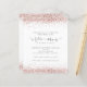 Futur Mme Rose Parties scintillant d'or invitation à la douche nuptiale. Un prix économique PETIT 4,5 po x 5,6 po alternatif. Disponible dans un STOCK CARTE SEMI GLOSS 110 lb qui est l'option par défaut (recommandé pour les invitations), OU un STOCK PAPIER THINNER SATIN FINISH 80 lb (idéal pour les boîtiers). Les enveloppes sont en option et légèrement plus grandes que la taille de la carte. The Future Mrs est dans un script d'art avec des motifs d'anneau et de coeur et le reste du texte que vous pouvez facilement personnaliser. Les bords supérieur et inférieur des deux côtés sont bordés de parties scintillant en or rose.