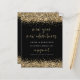 Un rapport qualité-prix BUDGET alternative sur une taille plus petite 4,5 x 5,6" semi-brillant poids 110lbs, qui est d'une épaisseur similaire à une carte postale (cependant ne convient pas à l'utilisation comme carte postale.) VEUILLEZ NOTER qu'il y a UN par feuille. Parties scintillant d'or Nouvel An Nouvelles Aventures Fiançailles noir Faire-part. Un peu étincelant pour annoncer vos nouvelles passionnantes en noir et or classique! D'élégantes bordures de parties scintillant en faux or sont en haut et en bas et aussi à l'arrière. New Year New Adventures et Fiançailles sont conçus dans un style moderne d'écriture manuscrite. Personnalisez facilement le reste du texte à vous.