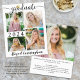 Un faire-part de graduation moderne et économique en noir et blanc imprimé sur un papier léger de 4,5 x 5,6 po au lieu de cartable avec typographie de script de calligraphie et un capuchon de graduation en feuille d'or métallique et personnalisé avec 5 photos (collage photo de quatre images sur le devant et une sur le dos). L'année de classe est modifiable pour les autres années. Le verso comprend une photo à fond vidé et un champ de texte optionnel pour votre texte personnalisé avec des détails sur votre diplômé. Idéal pour les budgets conservateurs et/ou l'exécution manuelle. Enveloppes vendues séparément sur la page de commande. ASSISTANCE : Pour obtenir de l'aide sur la modification/personnalisation de la conception, le changement de couleur, le transfert de la conception vers un autre produit ou si vous souhaitez coordonner des éléments, contactez le concepteur AVANT DE COMMANDER via Zazzle Conversation ou makeitaboutyoustore@gmail.com.