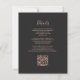 Le bord gauche de cette élégante faire-part de mariage moderne est orné d'une bordure en aquarelle blanche et grise bordée d'une parties scintillant en or rose. Le texte personnalisable combine écriture rose rose, cuivre et polices italiques sur un arrière - plan noir en ardoise foncée. L'envers offre de l'espace pour les détails mariages sur un arrière - plan non noir solide, ainsi qu'un code QR que les invités peuvent scanner pour visiter votre site Web et RSVP.