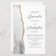 Le bord gauche de cette élégante faire-part de mariage moderne est orné d'une bordure en aquarelle grise et blanche ornée d'une parties scintillant en faux or. Le texte personnalisable combine le script gris charbon et les polices sans serif sur un arrière - plan blanc. L'envers offre de l'espace pour les détails mariages sur un arrière - plan blanc solide, ainsi qu'un code QR que les clients peuvent scanner pour visiter votre site Web et RSVP, ce qui permet d'économiser le coût d'impression et d'envoi de cartes RSVP séparées.