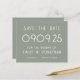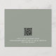 Une alternative de 4,5 x 5,6 pouces à prix réduit de 110 livres d'épaisseur similaire à une carte postale. Il y a UN par feuille. Budget Grosse Typographie Sage Mariage vert. Elégance moderne avec ce design typographique stylisé entièrement personnalisable sur le vert sauge. Personnalisez facilement le texte et, si vous avez un site Web mariage, générez automatiquement un code QR pour lui au verso en remplaçant l'exemple d'URL à celui de votre site Web mariage. Vous pouvez supprimer l'exemple de code QR si cela n'est pas nécessaire via l'option Modifier plus, où vous pouvez également modifier des couleurs et des styles de texte et des couleurs arrière - plans de chaque côté si vous le souhaitez.