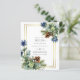 Chardons bleus, cônes de pin, feuilles d'Eucalyptus, faire-part de mariage d'hiver à thème mariage des merveilles, partie d'une plus grande collection qui inclut des invitations enregistrer les dates des cadeaux de la fête de la mariée de rsvp etc. Pour les idées de thème du guide de planification des mariages de Noël ou d'hiver, visitez weddingdesignchic.com .