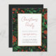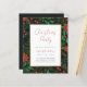 Invités Invitations à votre fête de Noël économiquement avec notre Budget Noël Invitation. Le feuillage d'hiver, les baies sèches et une fausse bordure d'or créent une atmosphère festive. "Christmas Party" en écriture manuscrite et typographie élégante présentent les détails de votre fête de façon attrayante.