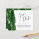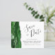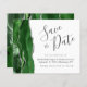 Cet élégant budget enregistrer la carte date dispose d'une bordure d'aquarelle vert chasseur avec bordure découpée avec fausse parties scintillant argent. Le texte personnalisable combine le script d'écriture manuscrite gris charbon, les polices cuivre et italique sur un arrière - plan blanc. L'envers est assorti d'un motif d'agate vert et argent chasseur.