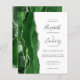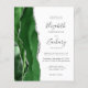 Le bord gauche de cette élégante faire-part de mariage moderne est doté d'une bordure en aquarelle vert chasseur, recouverte d'une parties scintillant en faux argent. Le texte personnalisable combine écriture manuscrite, copperplate et polices italiques en gris fusain sur un arrière - plan blanc. L'envers présente un design d'agate vert et argenté assorti.