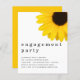 Invitation de la partie d'engagement du tournesol jaune Budget. Une alternative économique pour PETIT 4,5 po x 5,6 po. Disponible dans un STOCK SEMI GLOSS 110 lb CARD ou un STOCK SATIN FINISH 80 lb THINNER PAPER. Les enveloppes sont en option. Style informel. Un tournesol géant est en haut à droite et le titre est grand en bas en minuscules élégantes avec les détails en bas. Personnalisez facilement le texte à vos propres détails.