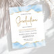 Cette invitation à la fête de graduation branchée présente une bordure supérieure et inférieure de géode d'aquarelle dans les tons bleu clair avec des reflets de parties scintillant en faux or. Le mot "Graduation" apparaît dans la parties scintillant en faux or dans la police décorative moderne d'écriture manuscrite. Customisez l'invitation avec le nom du diplômé en texte couleur or et les détails du parti en gris fusain sur un arrière - plan blanc. Une image d'agate en bleu clair et or correspondant apparaît à l'envers.