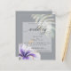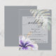 Prix abordable Rustic Tropical Watercolor Hibiscus and Foliing Faire-part de mariage | NOUVEAU ! Invitations de mariage léger et abordable - une fleur d'hibiscus tropicale violet lilas et une feuille de foune et une feuille de philodendron à feuilles cassées ornent les deux coins en diagonale, bordée d'or brillant, le tout posé sur un arrière - plan gris moyen avec une couche de blanc pur pour que le texte soit facilement lu et tout en permettant le design à travers - belle calligraphie manuscrite - facile à customiser modèle - design original par ©WhimsicalArtwork™ pour la BarefootBride ™. Cela fait partie de notre collection de mariages Aquarelle Tropical Hibiscus ainsi que Baby shower, Anniversaire et Christening Invitations. Pour toute question ou assistance, veuillez contacter le concepteur indy.designer@yahoo.com.