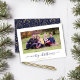 BUDGET Rustic Navy Blue Script Joyeux Noël Photo Holiday Card avec votre photo préférée et un script simple mais élégant Joyeux voeux de Noël. Le dos est un bleu marine de Noël festif avec un motif amusant de branches de vacances en feuille d'or et de verdure. Parfait pour vos cartes de fin de année cette année ! **Notre papier BUDGET est plus petit, plus léger et plus délicat, mais toujours beau! N'oubliez pas les enveloppes!** Si vous avez besoin d'aide ou de pièces de correspondance, contactez-nous à l'adresse cedarandstring@gmail.com.