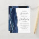 Le bord gauche de cette élégante faire-part de mariage moderne est orné d'une bordure en aquarelle bleu marine ornée d'une parties scintillant en faux argent. Le texte personnalisable combine le script gris charbon et les polices sans serif sur un arrière - plan blanc. L'envers est assorti d'un design d'agate bleu marine et argent.