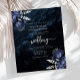 Cette élégante invitation à un mariage présente des bouquets de fleurs bleu marine, composés d'une végétation en faux feuille d'argent dans deux coins, sur une image arrière - plan d'agate d'aquarelle bleu marine. Le texte gris argenté personnalisable combine des polices serif, italique et manuscrite. L'envers présente un design floral et agate bleu marine et argent assorti.