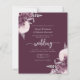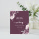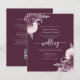 This elegant wedding invitation features mauve floral bouquets set off with silver faux foil greenery in two corners, on a deep mauve purple background. The customizable text combines silver gray serif, italic and handwriting fonts. The reverse side provides space for wedding details, along with a QR code guests can scan to visit your website and RSVP.