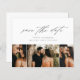 Une carte de save the date photo à script minimal et budget comprenant une belle calligraphie, 3 photos et un texte minimal sur le devant. Le verso comprend le site web de mariage pour plus d'informations. Cliquez sur le bouton modifier pour personnaliser ce design.