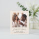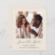 Cette simple et minimaliste carte Save the Date présente une photo carré au-dessus des mots "Save the Date" dans un élégant script d'écriture manuscrite blanche, suivie des noms du couple, date mariage et ville en sans serif police sur un arrière - plan beige. Ajoutez un message plus détaillé avec des informations supplémentaires sur l'inverse.