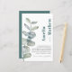 voici un design moderne et audacieux, avec une feuille d'eucalyputus d'aquarelle, dans des tons vert sauge et bleu doux et poussiéreux, évoquant un sentiment de grâce intemporelle et d'allure naturelle. Customisez avec vos propres informations.