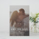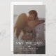 Simple élégante tendance photo fiançailles double face destination décontractée BUDGET mariage abordable enregistrer la carte de date modèle dans la typographie noir et blanc neutre. Convient aux mariages modernes.