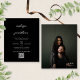 Une faire-part de mariage traditionnelle simple et moderne avec un élégant script de calligraphie blanc et un code QR pour faciliter rsvp et des détails à votre mariage. Au fond, il y a une photo complète que vous pouvez facilement changer avec un monogramme pour vos initiales et la date du mariage.