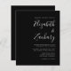 Ce faire-part de mariage moderne simple est composé de texte blanc sur un arrière - plan noir. Ajoutez les noms de la mariée et du marié en calligraphie stylisée et les détails en police sans serif. L'envers est noir solide.