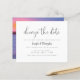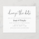 Oui ! Des circonstances imprévues se produisent, et quand elles le font, vous pouvez facilement faire savoir à vos invités d'une manière amusante et facile que vous avez besoin de reporter votre date de mariage avec cette carte postale minimaliste de report mariage noir et blanc. Avec "change la date" dans une police de calligraphie chic avec une simple typographie serif. Dans le cadre de la sélection du budget ici sur Zazzle, ces invitations ne sont pas fournies avec des enveloppes et ne s'insèrent pas dans une enveloppe de taille standard. La taille la plus proche est A6 mais il y aura un écart d'environ un demi-pouce. Si vous n'avez pas peur du manque de douceur, vous pourriez utiliser des enveloppes A6 aussi largement disponibles. Sinon, cette conception peut être transférée dans un format standard 5x7 (avec enveloppes) à l'aide de l'outil de transfert de conception. À titre d'exemple, au moment de la rédaction du présent document, 100 invitations budgétaires (y compris une remise sur le volume) coûteraient environ 39 $, alors que 100 invitations standards 5x7, y compris des enveloppes, coûteraient environ 135 $. Votre kilométrage peut varier en fonction des codes promo disponibles de Zazzle, des ventes à l'échelle du site ou des changements de prix.