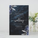 Papier Budget Navy Silver Floral QR Code Wedding Invite