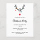 Une tête de renne mignonne, drôle, moderne, minimaliste et abstraite. Arrière - plan blanc. Une invitation à la fête parfaite pour une fête de Noël entre amis, en famille ou entre collègues. Personnalisez et ajoutez les détails de votre fête. Lettres noires. Dos : blanc.