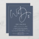 Script We Do Dusty Navy Blue QR Code Faire-part de mariage. Un prix économique PETIT 4,5 po x 5,6 po alternatif. Disponible dans un STOCK SEMI-GLOSS 110 lb CARD qui est l'option par défaut (plus épais pour les invitations), OU un STOCK SATIN FINISH 80 lb THINNER PAPER (idéal pour les boîtiers). Ajoutez votre code QR à votre site Web mariage au dos fait de cette option pratique pour vos invités à RSVP et voir tous les détails sans avoir besoin de RSVP séparé et de cartes de détails. Un design simple mais élégant sur un arrière - plan de bleu marine poussiéreux enchanté. Script stylish set We Do prend le devant de la scène.Le reste du texte que vous pouvez facilement personnaliser. Les couleurs du texte et de l'arrière - plan peuvent être modifiées si vous souhaitez mieux convenir à votre thème mariage via l'option customiser plus loin.