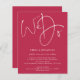 Script We Do Magenta QR Code Faire-part de mariage. Un prix économique PETIT 4,5 po x 5,6 po alternatif. Disponible dans un STOCK SEMI-GLOSS 110 lb CARD qui est l'option par défaut (plus épais pour les invitations), OU un STOCK SATIN FINISH 80 lb THINNER PAPER (idéal pour les boîtiers). Ajoutez votre code QR à votre site Web mariage à l'arrière, ce qui en fait une option pratique pour vos invités à RSVP et voyez tous les détails sans avoir besoin de RSVP séparé et de cartes de détails - il suffit de changer l'exemple d'url à votre propre et votre code QR sera généré automatiquement pour remplacer l'exemple. Un design simple mais élégant sur un arrière - plan de bleu marine poussiéreux enchanté. Script stylish set We Do prend le devant de la scène.Le reste du texte que vous pouvez facilement personnaliser. Les couleurs du texte et de l'arrière - plan peuvent être modifiées si vous souhaitez mieux convenir à votre thème mariage via l'option customiser plus loin.