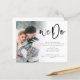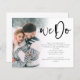 Budget Nous Faisons Script Photo QR Code Faire-part de mariage. Un prix économique PETIT 4,5 po x 5,6 po alternatif. Disponible dans un STOCK SEMI-GLOSS 110 lb CARD qui est l'option par défaut (plus épais pour les invitations), OU un STOCK SATIN FINISH 80 lb THINNER PAPER (idéal pour les boîtiers). Ajoutez votre code QR à votre site Web mariage au verso, ce qui en fait une option pratique pour vos invités à RSVP et voir tous les détails sans avoir besoin de RSVP séparé et de cartes de détails. Vous pouvez créer des codes QR gratuitement en ligne. Il suffit de chercher "créateur de code QR" et beaucoup d'options viennent créer gratuitement. Un design ludique minimaliste pour faire connaître à tout le monde vos bonnes nouvelles. Remplacez simplement l'exemple de photo par votre préféré. Un calque de superposition de dégradé se trouve au-dessus de votre photo, de sorte qu'il s'évanouit lorsqu'il atteint le centre avec le texte partiellement recouvert sur le dessus. We Do est dans un script élégant et audacieux et personnalise facilement le reste du texte.