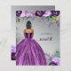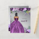 Parties scintillant Budget Argent Violet Éperche Robe Douce 16 Anniversaire Invitation. Cheveux noirs courts de la peau foncée