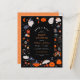 Peek a boo ! This play on words is perfect pour un bébé shower neutre du genre Halloween. These boho style cards feature a frame of cute boho spooky élément : ghosts, pompage, spiders, an owl, bats, magical flowers, candy, a crystal ball, moons, stars, and more, against a black background. Inside the border, "peek a boo!" is written curved over the other text in lowercase letters. Your event details appear in simple typographiy, with your name or names in script calligraphy. Cards reverse to cute starry sky pattern against à orange background. As part of the budget selection on Zazzle, this sheet isn't a standard invite size or paper quality. If yant this design on invite card you can find it in our store or use the Zazzle Make Machine to transfer it onto the product of your choice. Feel free to contact me if you have questions or would like a custom made design ! Check out the collection link below for matching items !
