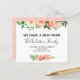 Budget Peach - Coral et Eucalyptus Verdure Moderne et Élégant Floral Watercolor Spring Nous avons Déménagé Nouvelle Maison ou Nouvelle Adresse Cartes - comprend belle et élégante typographie script avec fleurs botaniques modernes et verdure pour la célébration spéciale New Home ou New Address.
