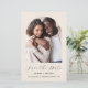 Cette simple et minimaliste carte Save the Date présente une arche photo au-dessus des mots "Save the Date" dans un élégant script d'écriture manuscrite en noir, suivi des noms du couple, date mariage et ville en sans serif police sur un arrière - plan beige. Ajoutez un message plus détaillé avec des informations supplémentaires au verso, ainsi qu'un code QR que vos invités peuvent utiliser pour visiter votre site Web mariage.