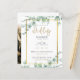 Découvrez nos nouvelles invitations de mariage, parfaites pour le couple moderne à la recherche d'une touche d'élégance et de charme botanique. Les invitations comprennent une belle typographie moderne et une photo du couple engagé sur le dos, ajoutant une touche personnelle à votre journée spéciale. Le design est magnifiquement décoré avec des feuilles d'eucalyptus aquarelle, une verdure étonnante qui le rend adapté à toutes les saisons - que vous planifiez un mariage de printemps, d'été, d'automne ou d'hiver. Avec son ambiance boho-chic et son élégance intemporelle, ces invitations sont parfaites pour le couple qui cherche à incorporer une certaine beauté naturelle dans leur grand jour. Que vous planifiez un mariage d'inspiration classique ou bohème, ces invitations sont assurées de faire une déclaration. Invitation vos proches dans le style et donner le ton pour votre grande journée avec ces invitations de mariage charmantes et d'inspiration botanique.