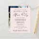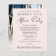 Étage rose pâle et économique ou faire-part de mariage privé combiné à une réception de mariage enregistrer la date. La page d'accueil contient "Save The Date For Our Happily Ever After Party" dans un mélange de typographie et de script, et vous pouvez personnaliser votre faire-part mariage et la réception enregistrer la date dans plus de détails et vos noms dans un script signature. Au verso, vous trouverez votre photo de mariage préférée, vos prénoms et les dates de mariage et de réception.