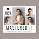 Un faire-part d'obtention du diplôme d'études supérieures abordable avec un collage photo de 4 images, "Mastered It" écrit en gros caractères et son année de classe, nom et collège ou université en simple typographie. Au verso, ajoutez une photo supplémentaire et un message personnalisé.