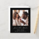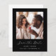 Cette simple et minimaliste carte Save the Date présente une photo carré au-dessus des mots "Save the Date" dans un élégant script d'écriture manuscrite blanche, suivie des noms du couple, la date du mariage et la ville dans la police sans serif sur un arrière - plan noir. Ajoutez un message plus détaillé avec des informations supplémentaires sur l'inverse, ainsi qu'un code QR qui envoie les invités à votre site Web mariage.
