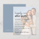 Faire-part mariage moderne bleu poussiéreux et économique et invitation à la réception avec votre photo superposée avec "Happily Ever After Party" dans un mélange d'un script contemporain et de lettres audacieuses. Personnalisez votre message et votre invitation et ajoutez vos noms dans un script de type signature. Au dos, vos noms et vos dates de mariage et de réception sont en simple lettrage blanc et se rejoignent par un coeur (si vos dates de mariage et de réception sont différentes, gardez vos prénoms sur la ligne supérieure et vos deux dates séparées par le coeur sur une deuxième ligne).