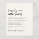 Une invitation simple et économique à la réception de mariage crème légère. L'avant présente "Happily Ever After Party" dans un mélange d'écriture contemporaine et de typographie moderne audacieuse, votre invitation personnalisée, et vos noms dans un script signature. Au verso, ajoutez votre photo et entrez l'adresse de votre site Web mariage pour créer un code QR que vos invités peuvent scanner en ligne à RSVP et obtenir des détails supplémentaires sur le mariage, tels que les itinéraires et les hébergements. Ce papier semi-brillant budgétaire est similaire en poids au papier photo. Une version plus grande de 5x7 traditionnelle carte stock est également disponible (message nous pour le lien).