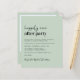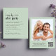 Une invitation à la réception de mariage verte et chic et économique avec "Happily Ever After Party" dans un mélange d'écriture contemporaine et de lettrage moderne minimal, votre invitation, et vos noms dans un script signature. Au verso, ajoutez votre photo et entrez l'adresse de votre site Web mariage pour créer un code QR pour que vos invités puissent scanner en ligne vers RSVP et obtenir des détails mariages supplémentaires. Ce papier semi-brillant budgétaire est similaire en poids au papier photo. Une version plus grande de 5x7 traditionnelle carte stock est également disponible (message nous pour le lien).