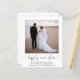 Un aménagement simple et chic pour un budget raisonnable ou une petite réception mariage et une réception post mariage ou une invitation à la fête. L'avant présente votre photo, "joyeusement après" dans un script élégant avec des swashes et vos prénoms, date mariage et emplacement. Au contraire, personnalisez votre faire-part mariage et votre invitation à la réception ou à la fête, entrez votre adresse URL de site Web mariage pour créer un code QR que les invités peuvent scanner pour voir vos photos de mariage, tous les détails et à RSVP en ligne et signer vos noms mariés dans un script signature.