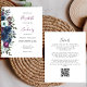 Le bord gauche de cette faire-part de mariage romantique est orné d'un bouquet floral aquarelle de prune, de fleurs et de verdure bleu marine et pourpre. Le texte personnalisable combine écriture de prune avec cuivre gris fusain et polices italiques sur un arrière - plan blanc. L'envers offre de l'espace pour les détails mariages sur un arrière - plan blanc solide, ainsi qu'un code QR que les clients peuvent scanner pour visiter votre site Web et RSVP, ce qui permet d'économiser le coût d'impression et d'envoi de cartes RSVP séparées.