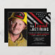 Cette conception comprend un drapeau de pompiers avec des rayures noires et blanches, ainsi qu'une fine bande rouge. Le texte "La légende prend sa retraite" s'inscrit avant tout dans les détails du parti pour le pompier, lieutenant ou chef qui prend sa retraite. Customisez ce design encore plus loin avec une photo du pompier à la retraite.