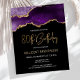 Cette invitation branchée de 80ème anniversaire présente une image aquarelle d'une géode d'agate dans les tons violet avec des reflets d'or. Les mots "80th Birthday" apparaissent dans la parties scintillant en faux or dans la police décorative moderne d'écriture manuscrite. Customisez-le avec le nom de l'honoré dans le texte couleur or et les détails en blanc. La même image d'agate violette apparaît à l'envers.
