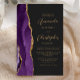 Le bord gauche de cette élégante faire-part de mariage moderne est orné d'une bordure d'aquarelle violette ornée d'une parties scintillant en faux or. Le texte personnalisable combine un script de couleur or et des polices sans serif sur un arrière - plan noir en ardoise. Un motif d'agate violet assorti apparaît au verso de la carte.