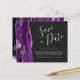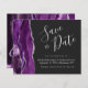 Cet élégant budget enregistrer la carte date dispose d'une bordure d'aquarelle violette taillée avec parties scintillant faux argent. Le texte personnalisable combine écriture manuscrite gris argenté et polices cuivre sur un arrière - plan non noir. L'envers est assorti d'un design d'agate violet et argenté.