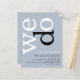 Un rapport qualité-prix BUDGET alternative sur une taille plus petite 4,5 x 5,6" semi-brillant poids 110lbs, qui est d'une épaisseur similaire à une carte postale (cependant ne convient pas à l'utilisation comme carte postale.) VEUILLEZ NOTER qu'il y a UN invitation par feuille. BUDGET Simple QR code Dusty Blue Texte Mariage Invitation. Ajoutez votre code QR à votre site Web mariage au verso afin que vos invités puissent RSVP et voir tous les détails en ligne sans avoir besoin de pièces jointes séparées. Un design typographique moderne avec We Do en grande typographie en blanc avec le "d" en noir, tourné et à gauche sur un arrière - plan de bleu clair poussiéreux. Les couleurs Arrière - plans et textuelles peuvent être modifiées si vous le souhaitez via Personnaliser.