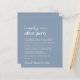 Faire-part de mariage bleu poussiéreux et simple, bon marché, et invitation à la réception. L'avant présente "Happily Ever After Party" dans un mélange d'un script blanc contemporain et d'une typographie blanche moderne audacieuse. Personnalisez votre faire-part et votre invitation et ajoutez vos noms dans un script de type signature. Au contraire, entrez l'adresse URL de votre site Web mariage pour créer un code QR permettant à vos invités de rechercher plus d'informations et de consulter RSVP en ligne