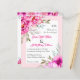 BUDGET rose aquarelle fleurs vert floral faire-part de mariage avec code QR pour RSVP. Il présente des bouquets de fleurs dans les tons roses chauds aux coins tandis que votre texte est placé dans un cadre blanc avec une bordure rose vif. L'arrière comprend des guirlandes fleuries sur les parties supérieure et inférieure et le code QR.